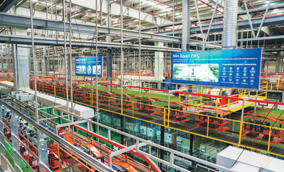 泰國(guó)春武里府,美的集團(tuán)家用空調(diào)事業(yè)部的5G全聯(lián)接工廠內(nèi)景。(新華社發(fā))