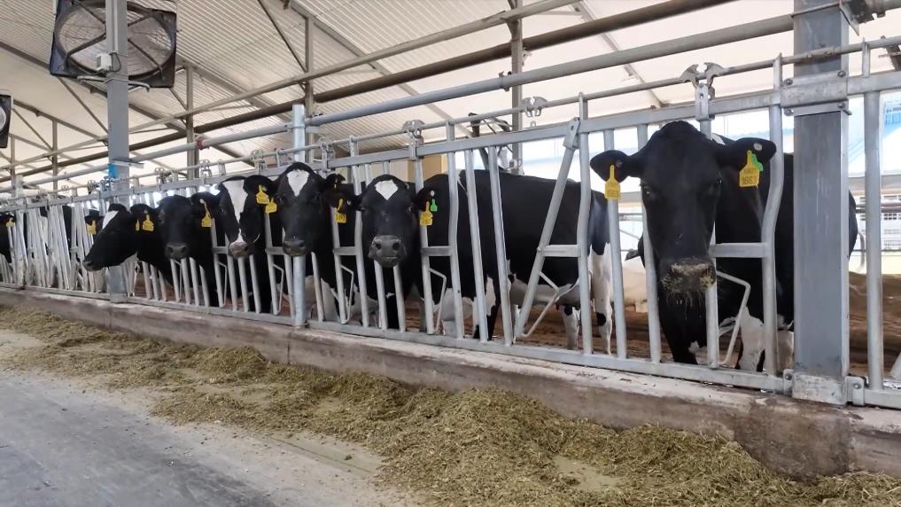 走進位于內(nèi)蒙古呼和浩特市土默特左旗的敕勒川生態(tài)智慧牧場,奶牛們住進了“別墅”,在飼喂機器的幫助下品嘗午餐,水足飯飽后躺下休息。