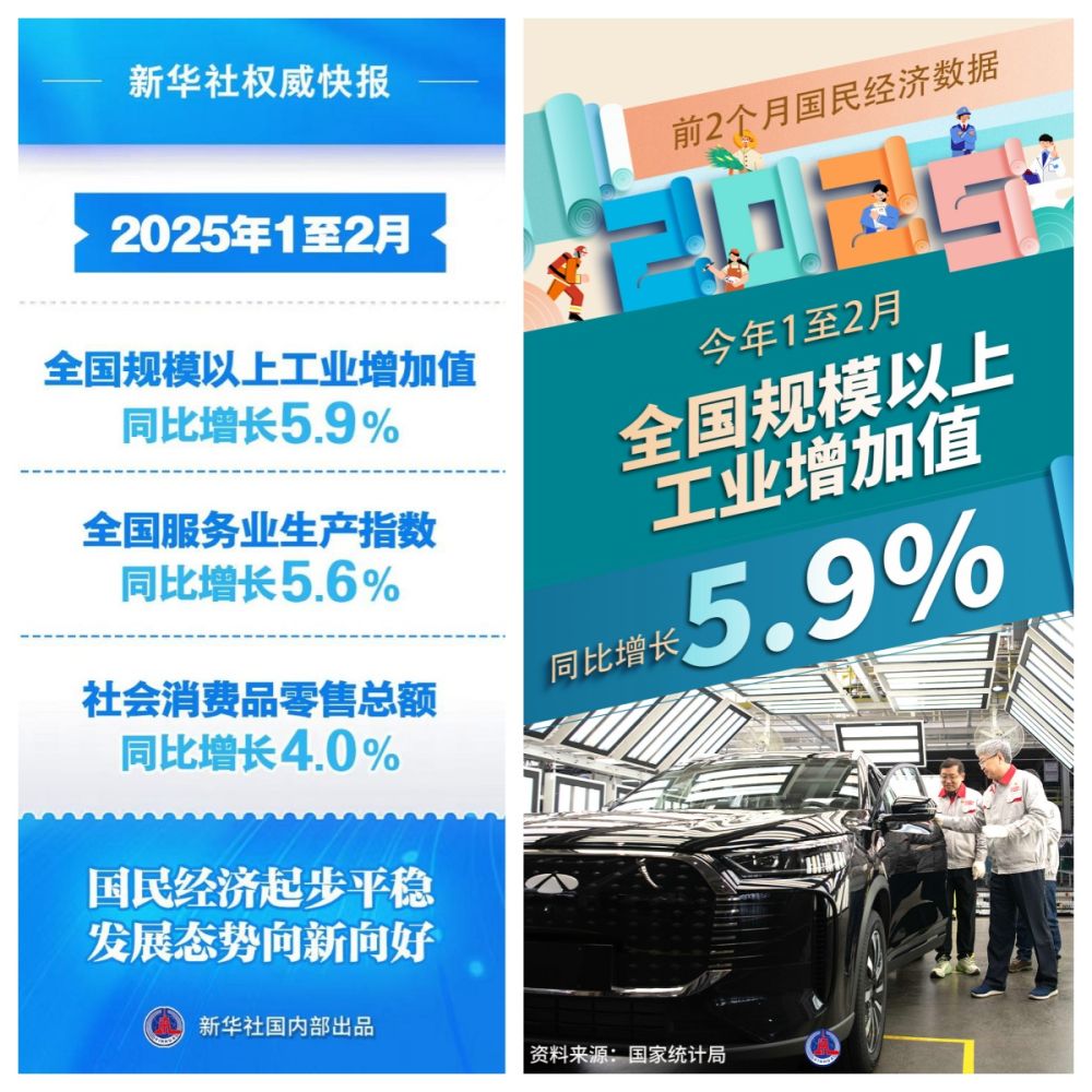今年前2個月,工業(yè)服務(wù)業(yè)較快增長,消費投資繼續(xù)改善,就業(yè)形勢總體穩(wěn)定,新質(zhì)生產(chǎn)力成長壯大,經(jīng)濟運行起步平穩(wěn),發(fā)展態(tài)勢向新向好,展現(xiàn)中國經(jīng)濟強大韌性。