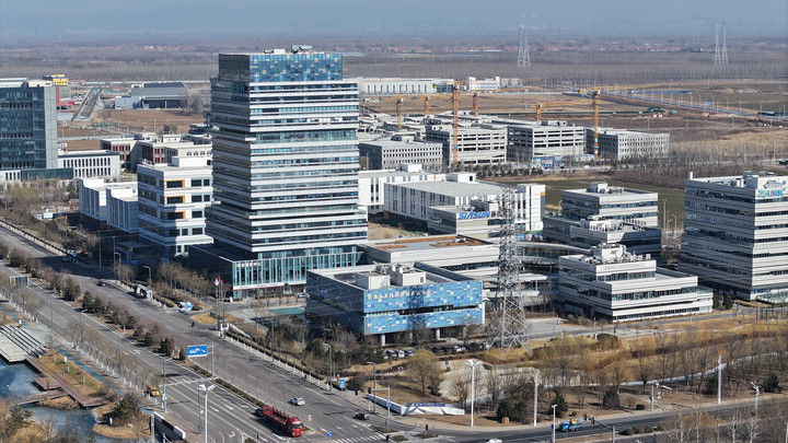 這是2月24日拍攝的京津中關(guān)村科技城(無人機照片)。京津中關(guān)村科技城自2017年正式破土動工以來,已累計注冊市場主體1800余家,2024年稅收同比增長13%,固定資產(chǎn)投資同比增長31.8%,規(guī)上工業(yè)產(chǎn)值同比增長62%。新華社記者 李然 攝