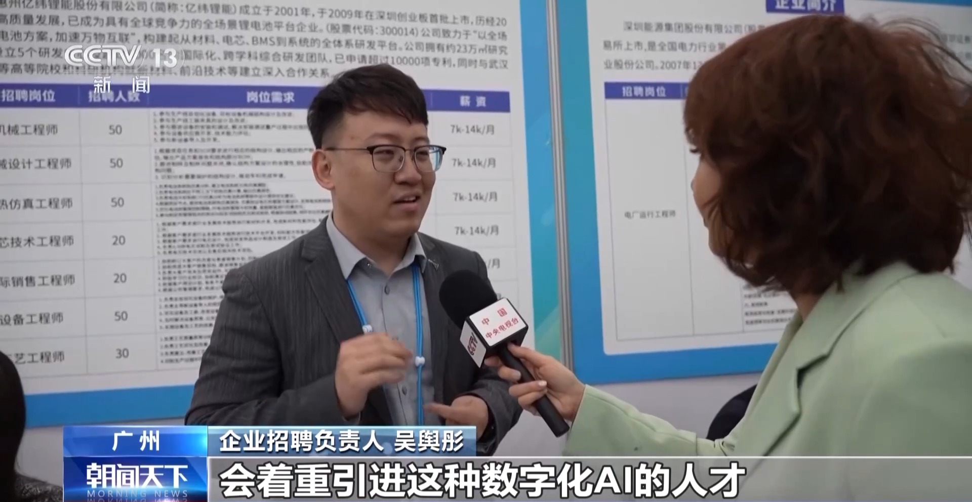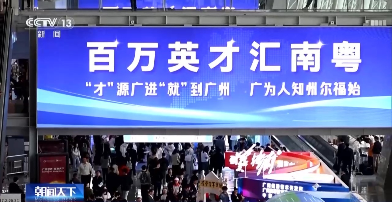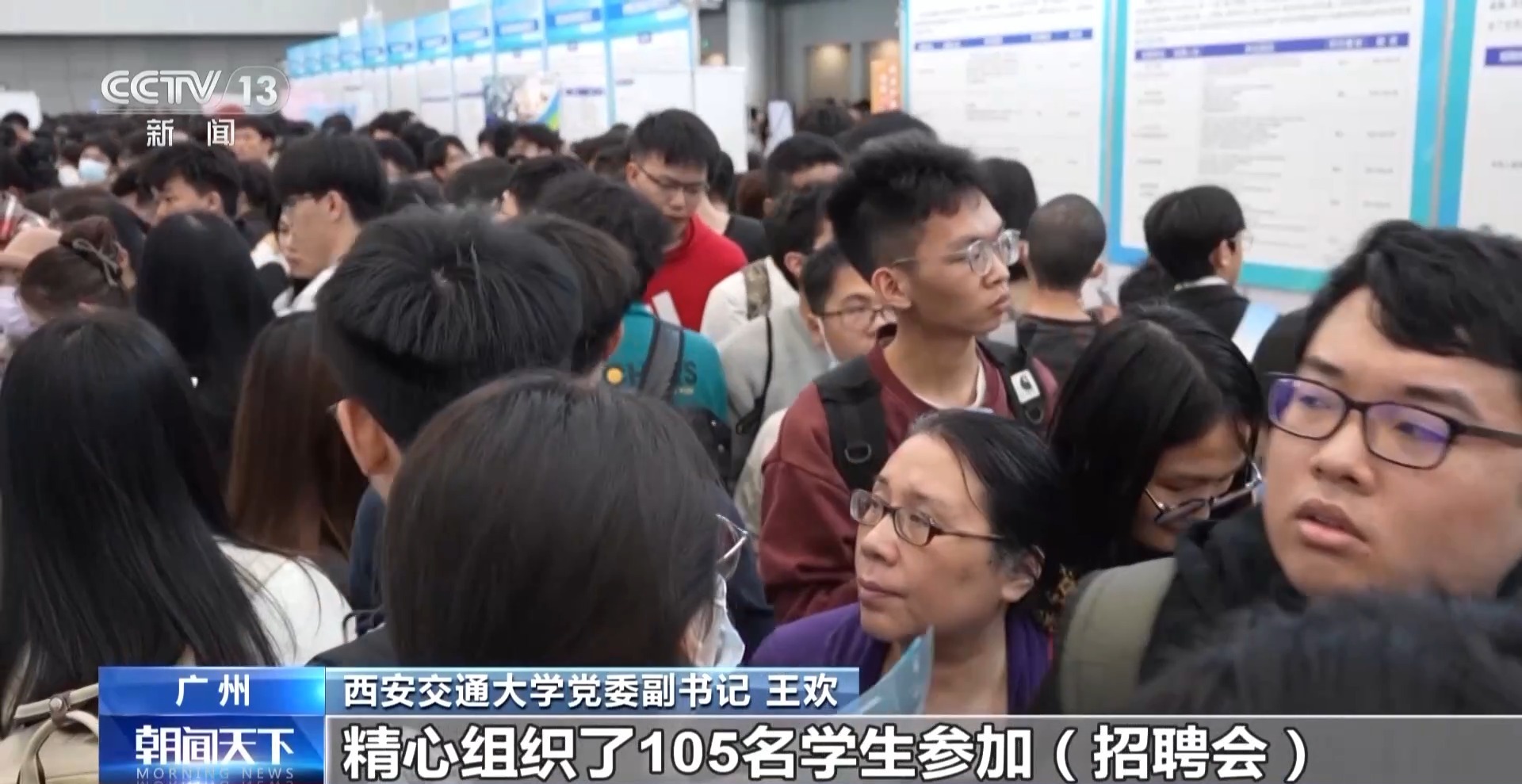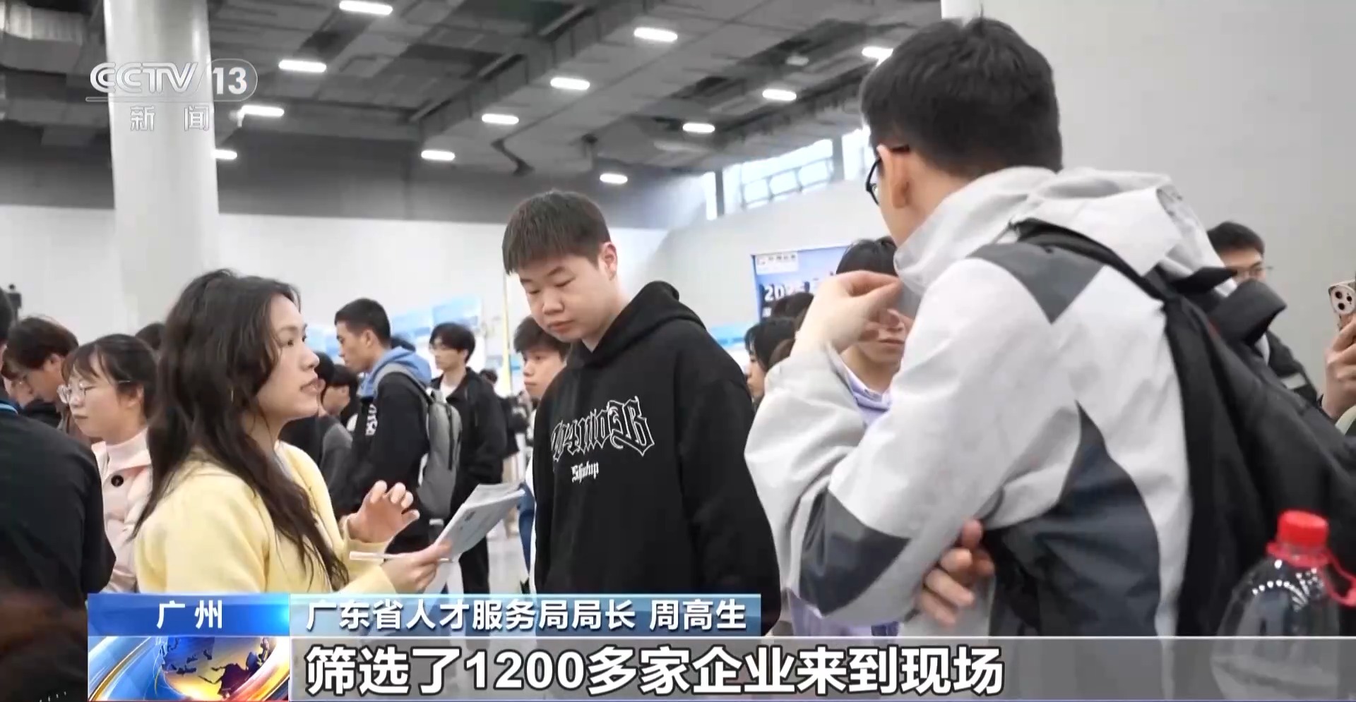 總臺(tái)央視記者 唐蕾:在廣州市琶洲廣交會(huì)展館,和往年比,今年春招規(guī)模擴(kuò)大了近3倍,在這里,不僅有一站式的招聘會(huì),還有人工智能與機(jī)器人專場項(xiàng)目對(duì)接會(huì)等多種人才對(duì)接活動(dòng)。