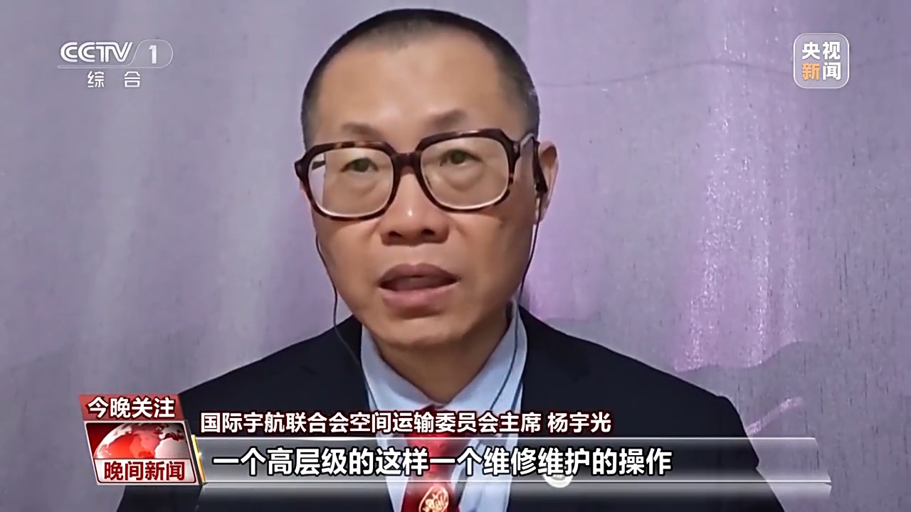 國(guó)際宇航聯(lián)合會(huì)空間運(yùn)輸委員會(huì)主席 楊宇光:我們已經(jīng)開始對(duì)空間站高層級(jí)的維修維護(hù)操作,同時(shí)這些活動(dòng)本身也在為我們未來(lái)更復(fù)雜、更具挑戰(zhàn)性的出艙活動(dòng)奠定基礎(chǔ)。