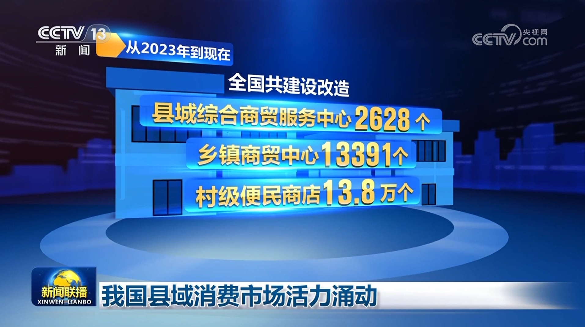 商務(wù)部數(shù)據(jù)顯示,從2023年到現(xiàn)在,全國(guó)共建設(shè)改造縣城綜合商貿(mào)服務(wù)中心2628個(gè)、鄉(xiāng)鎮(zhèn)商貿(mào)中心13391個(gè)、村級(jí)便民商店13.8萬個(gè)。