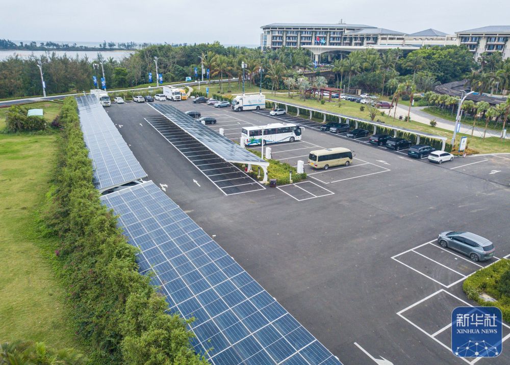 ↑ 這是3月25日拍攝的博鰲零碳示范區(qū)內(nèi)的電動汽車充電站。