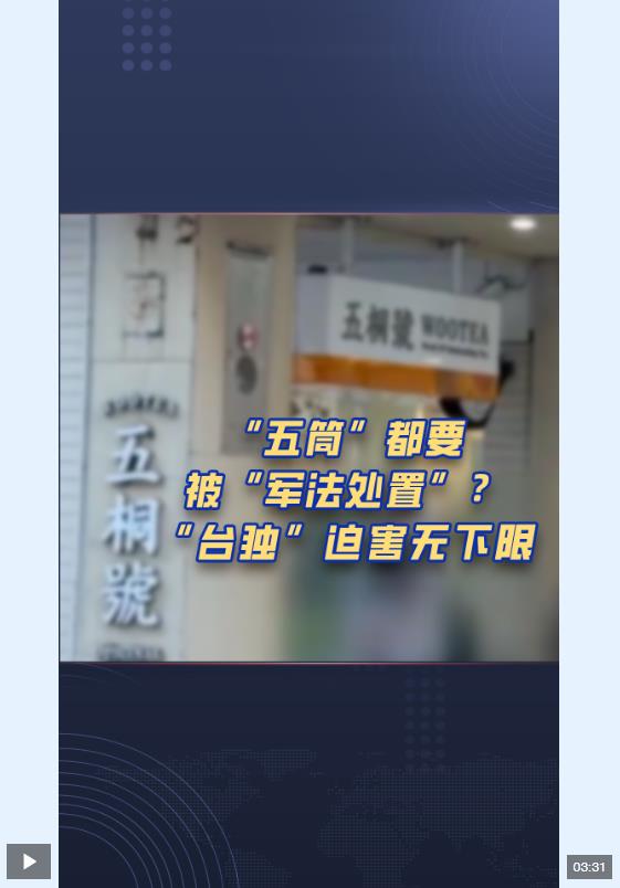 最近一段時間,民進(jìn)黨當(dāng)局打壓迫害島內(nèi)支持兩岸和平發(fā)展人士的行為,已經(jīng)到了喪心病狂的地步,甚至有家奶茶店因為叫“五桐號”,而被綠營抵制說是在諧音“武統(tǒng)好”,難怪有人諷刺:如今的臺灣,打麻將說“五筒”都會被“軍法處置”。有島內(nèi)輿論指出,賴清德違逆民意拋出“17項策略”,是“戒嚴(yán)再起、‘臺獨’叫陣”,是“綠色恐怖執(zhí)政”。臺灣社會各界也紛紛表達(dá)不滿: