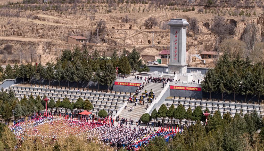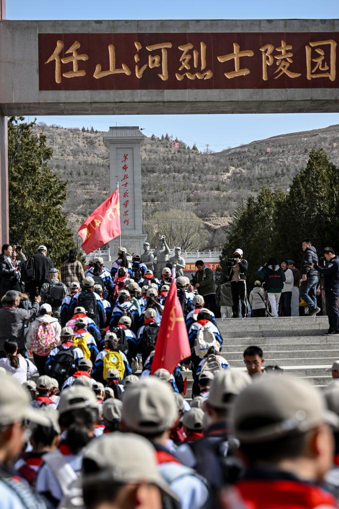 4月3日,參加徒步祭英烈活動(dòng)的師生抵達(dá)位于彭陽(yáng)縣的任山河烈士陵園。