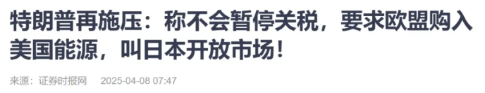 特朗普今天剛要求歐盟,加大購(gòu)買美國(guó)天然氣和石油,更要求日本放開農(nóng)產(chǎn)品、汽車等關(guān)鍵市場(chǎng)。