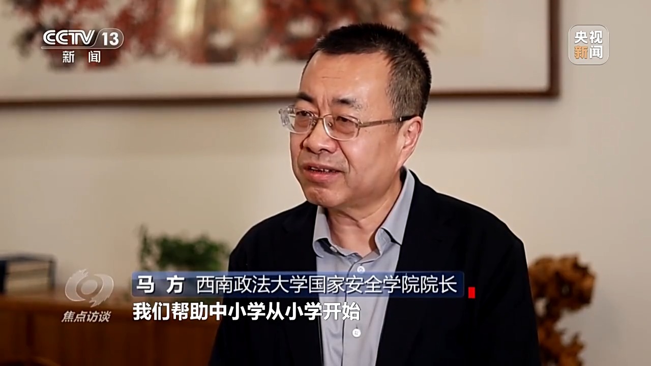 西南政法大學(xué)國(guó)家安全學(xué)院院長(zhǎng) 馬方:從去年開(kāi)始,我們開(kāi)始做國(guó)家安全宣傳教育年,幫助中小學(xué)從小學(xué)開(kāi)始,建立一體化課程體系。我們特別要求國(guó)家安全學(xué)的碩士、博士,海外利益安全的本科生必須要參加宣講團(tuán),在參加宣講團(tuán)的過(guò)程中去理論學(xué)習(xí)、調(diào)研,實(shí)際上是對(duì)專(zhuān)業(yè)學(xué)習(xí)深化實(shí)踐的過(guò)程。