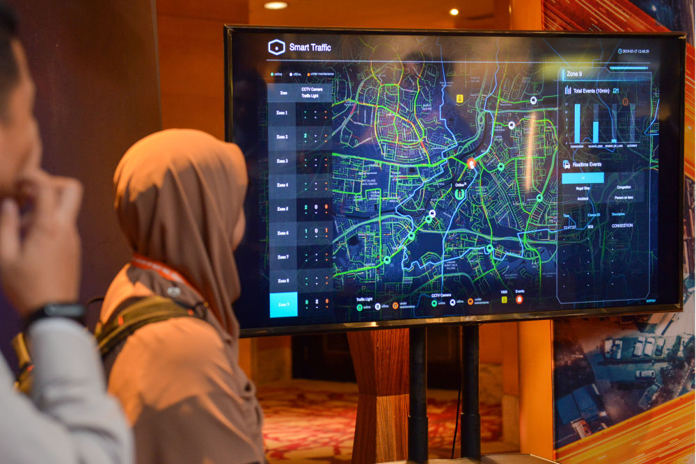 2019年,中國阿里巴巴集團(tuán)旗下云計(jì)算及人工智能科技公司阿里云宣布與馬來西亞智能交通公司“塞納交通系統(tǒng)”合作,在馬來西亞共同打造智能交通管理系統(tǒng)。這是2019年5月23日在吉隆坡拍攝的智能交通管理系統(tǒng)演示現(xiàn)場。