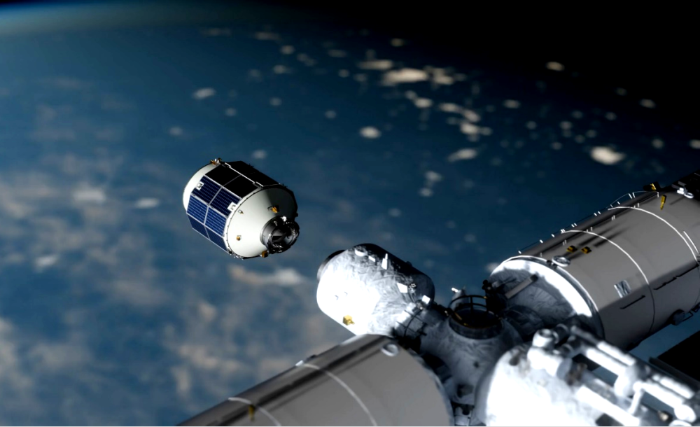 輕舟貨運(yùn)飛船與中國空間站對接示意圖。(中國科學(xué)院微小衛(wèi)星創(chuàng)新研究院供圖)
