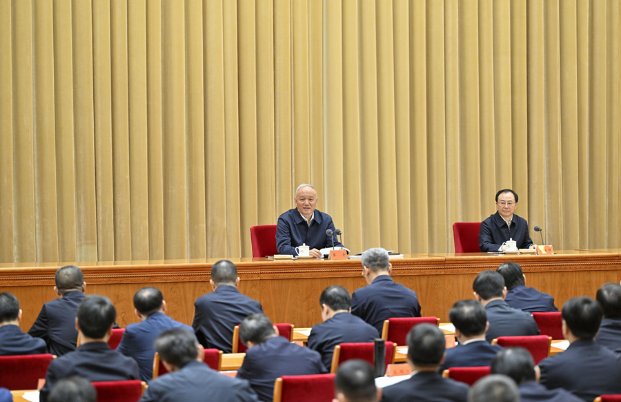 4月24日,全國(guó)黨委和政府秘書長(zhǎng)會(huì)議在北京召開。中共中央政治局常委、中央辦公廳主任蔡奇出席會(huì)議并講話。新華社記者 殷博古 攝