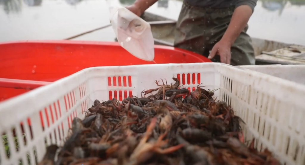 剛出水的小龍蝦被立即送往分揀中心,進(jìn)行質(zhì)量檢驗(yàn)和稱重分級。分揀線上,分揀工岳臘春戴著橡膠手套,指尖翻飛間完成了龍蝦的分級。岳臘春說,“我們是發(fā)月工資,一個(gè)月5000元,一天工作按貨的多少來定?!?/p>