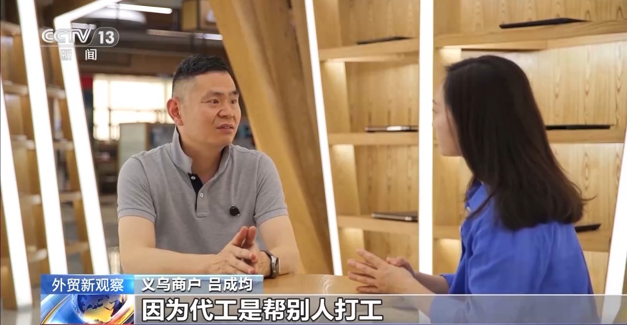 義烏商戶 呂成均:我們不做代工,為什么?因?yàn)榇な菐蛣e人打工,自主品牌的話,我們自己去發(fā)展。一定要這樣走,因?yàn)椴蛔銎放?,意味著你沒有話語權(quán);不做品牌,意味著你沒有生命力,意味著以后沒有未來。