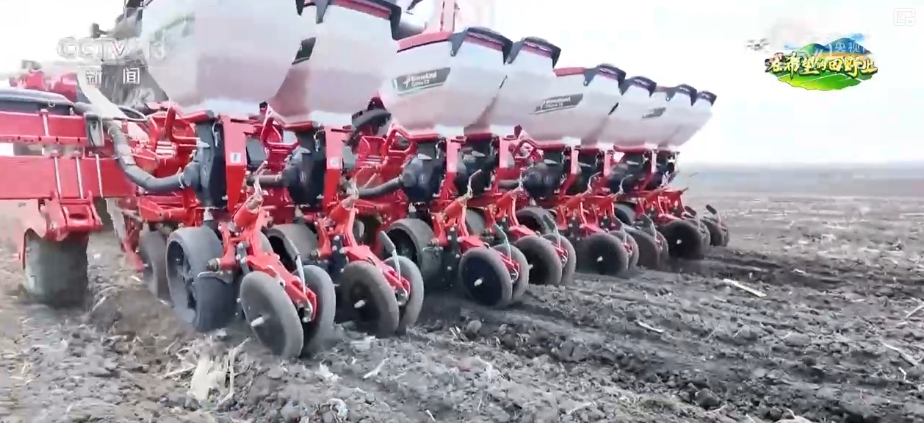 在鶴崗市興安區(qū)的萬畝良田,當(dāng)?shù)睾献魃鐒倓傄M的智能施肥播種機憑借精準(zhǔn)北斗定位系統(tǒng),將玉米種子精準(zhǔn)植入黑土,同步完成定量施肥,大大提升了播種效率。