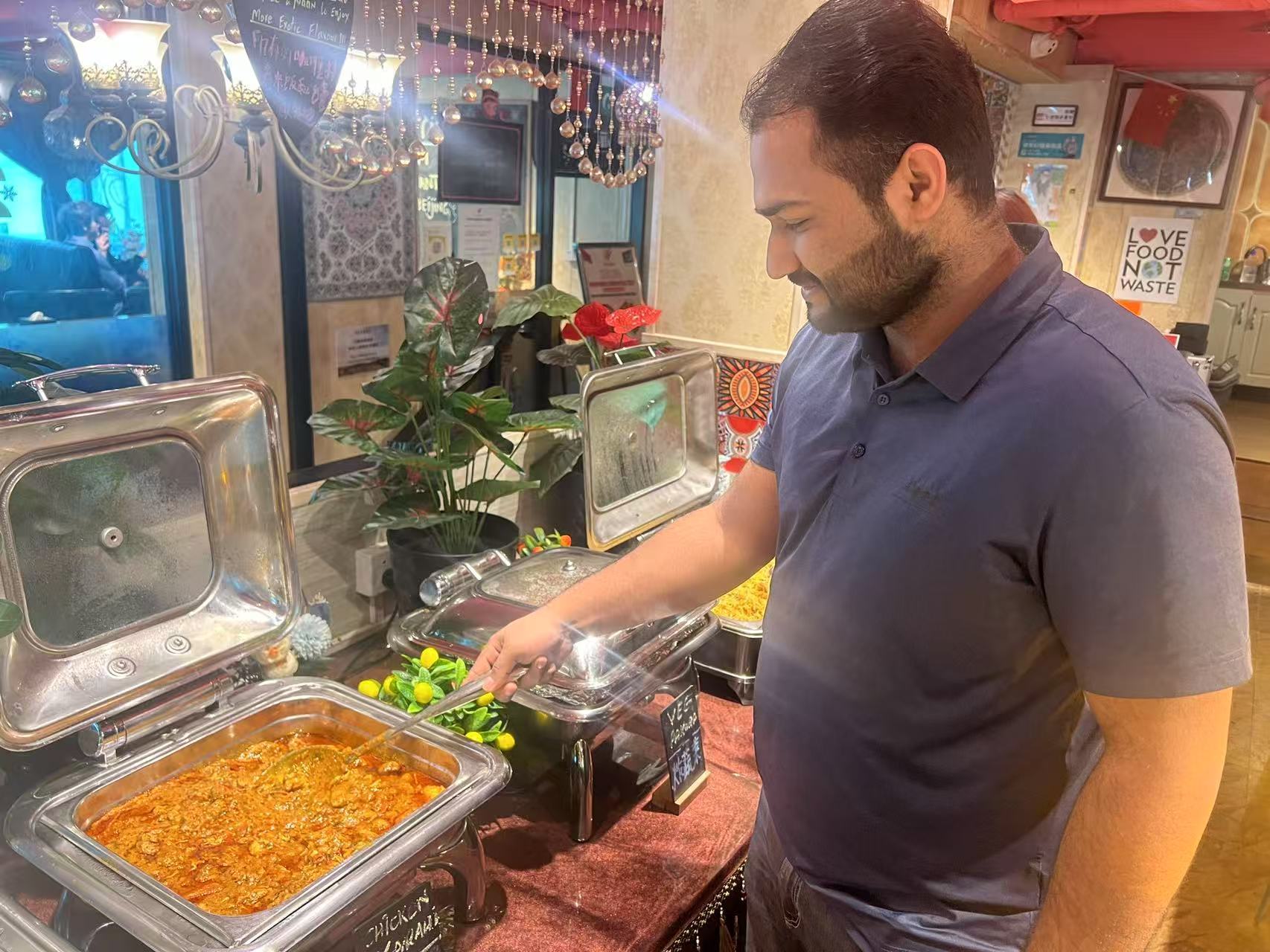 這家餐廳2018年在北京創(chuàng)立,創(chuàng)立人是巴基斯坦人阿德。如今餐廳主要由阿德28歲的弟弟阿馬德打理。阿馬德告訴記者,哥哥創(chuàng)辦這家餐廳的初衷不僅希望它是美味的棲息地,更希望它成為中巴民間交流的鮮活紐帶。