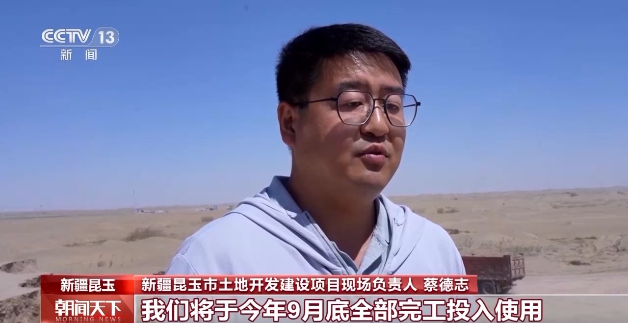 新疆昆玉市土地開(kāi)發(fā)建設(shè)項(xiàng)目現(xiàn)場(chǎng)負(fù)責(zé)人 蔡德志:我們將于今年9月底全部完工投入使用,已完成現(xiàn)場(chǎng)總進(jìn)度的75%。