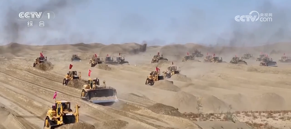 在位于塔克拉瑪干沙漠南緣的新疆昆玉市,7.38萬畝土地開發(fā)建設(shè)項目進(jìn)入攻堅階段。上百臺裝載機(jī)、平地機(jī)在沙海中來回奔忙,原本丘壑縱橫的流動沙丘經(jīng)過連續(xù)作業(yè),逐漸變得平整,顯露出田壟的輪廓。