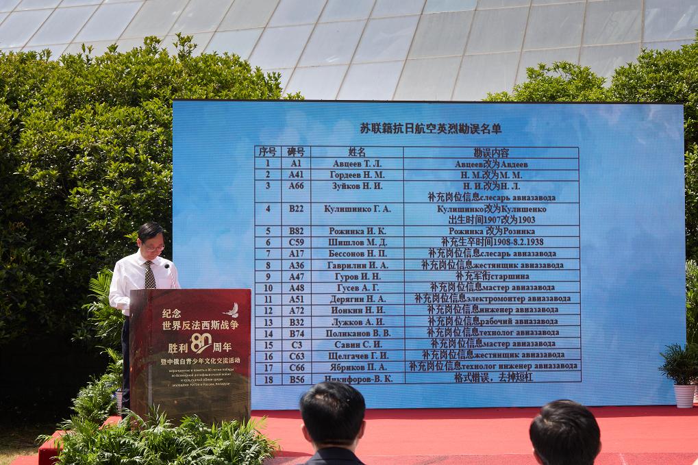 “我們期待與俄方相關(guān)部門、機(jī)構(gòu)和民間組織一道,尋找更多蘇聯(lián)籍抗日航空英烈史料,讓這些為了正義與和平而犧牲的年輕人的事跡,永遠(yuǎn)記載在歷史的豐碑上?!毖ι徴f。