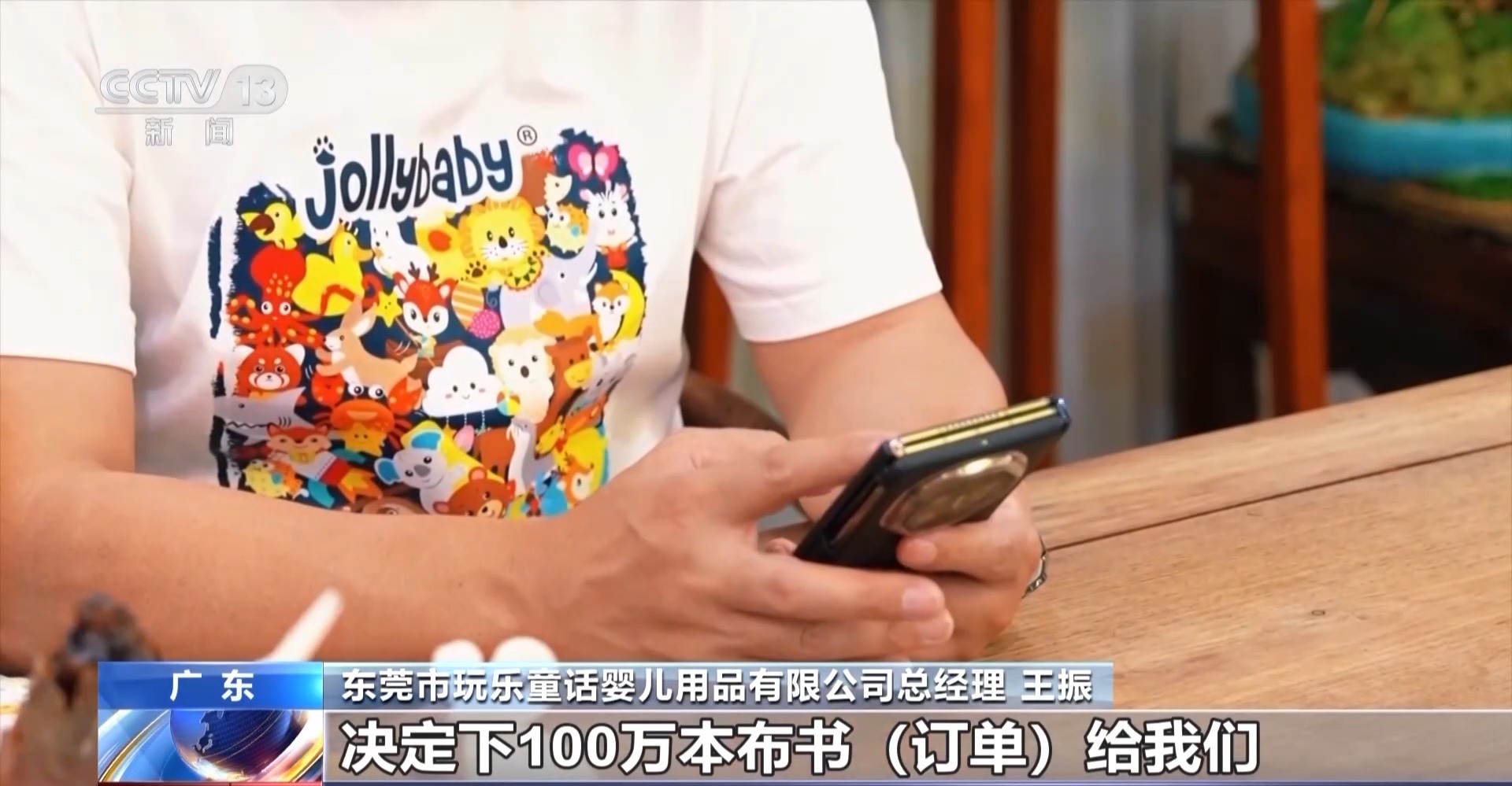 東莞市玩樂童話嬰兒用品有限公司總經(jīng)理 王振:到晚上12點多他們就發(fā)信息給我,決定在我們這里下100萬本布書訂單,當時我們大家非常非常興奮。