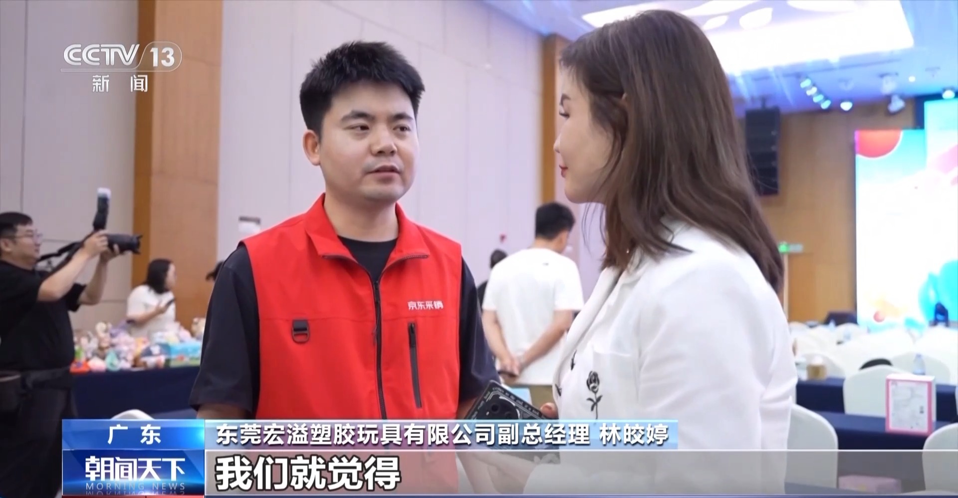 東莞宏溢塑膠玩具有限公司副總經(jīng)理 林皎婷:我們公司一直都是銷往美國為多,銷往美國的營業(yè)額已經(jīng)占了50%或以上,一直沒有做過內銷。我們覺得我們可以借這個平臺跟京東對接完以后,看怎樣帶領我們做內銷,把國內的市場做好。