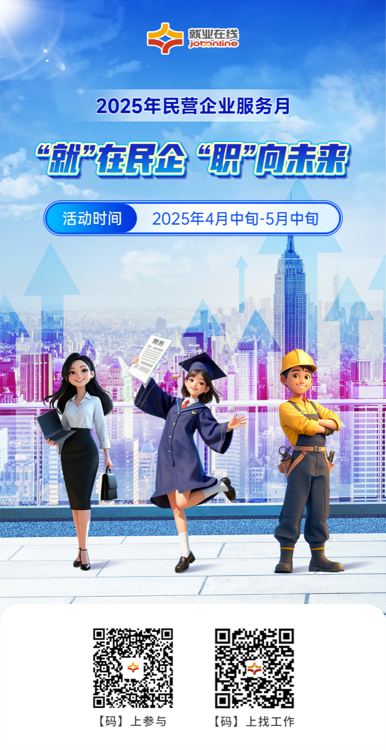 為支持民營(yíng)經(jīng)濟(jì)發(fā)展,促進(jìn)高質(zhì)量充分就業(yè),按照人力資源社會(huì)保障部等6部門關(guān)于開展2025年民營(yíng)企業(yè)服務(wù)月活動(dòng)安排,“就業(yè)在線”平臺(tái)開展2025年民營(yíng)企業(yè)服務(wù)月線上招聘求職服務(wù)活動(dòng),助力民營(yíng)企業(yè)招聘用工和廣大勞動(dòng)者求職就業(yè)。