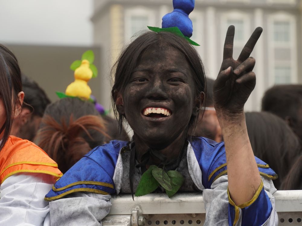 今年,墨江縣還把傳統(tǒng)民俗活動(dòng)“抹黑臉”狂歡進(jìn)行了升級(jí),將原本不易清洗的鍋底灰替換為以咖啡粉為主要原料的抹黑臉?lè)邸?/p>