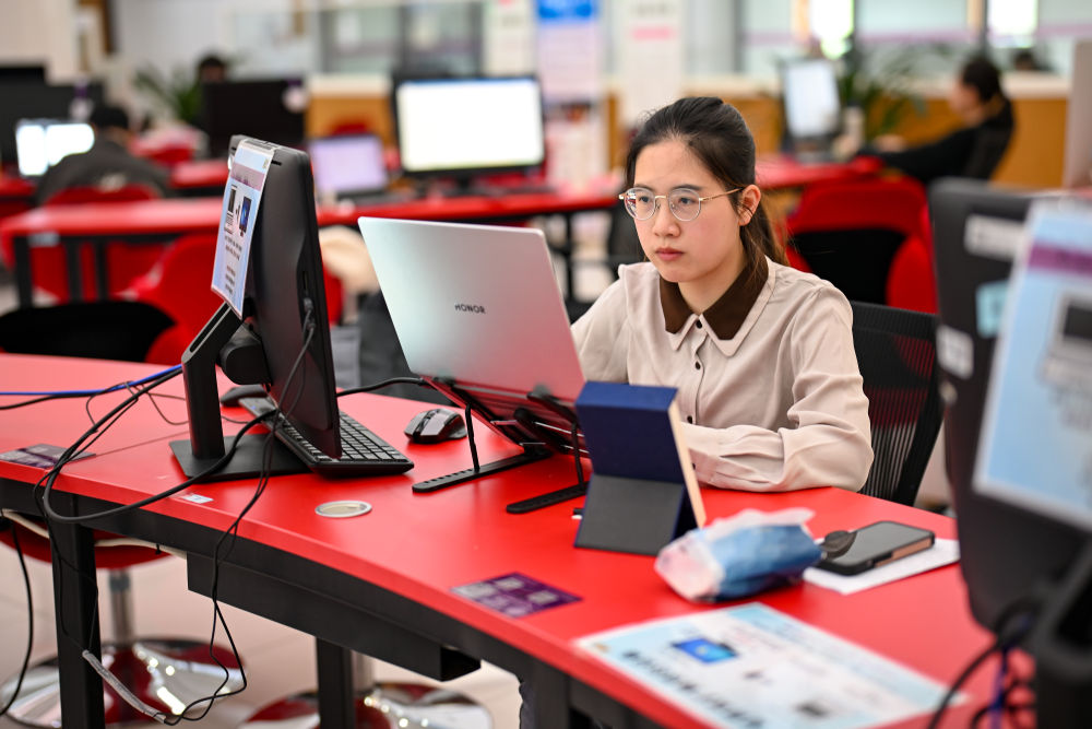 5月7日,在南開大學(xué)津南校區(qū),楊雅麗在圖書館修改論文。