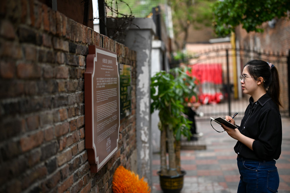 5月8日,楊雅麗在天津五大道參觀歷史文化街區(qū)。