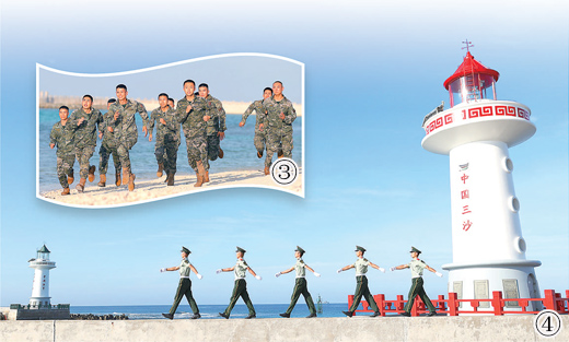 圖④:戰(zhàn)士們?cè)趰u上巡邏。