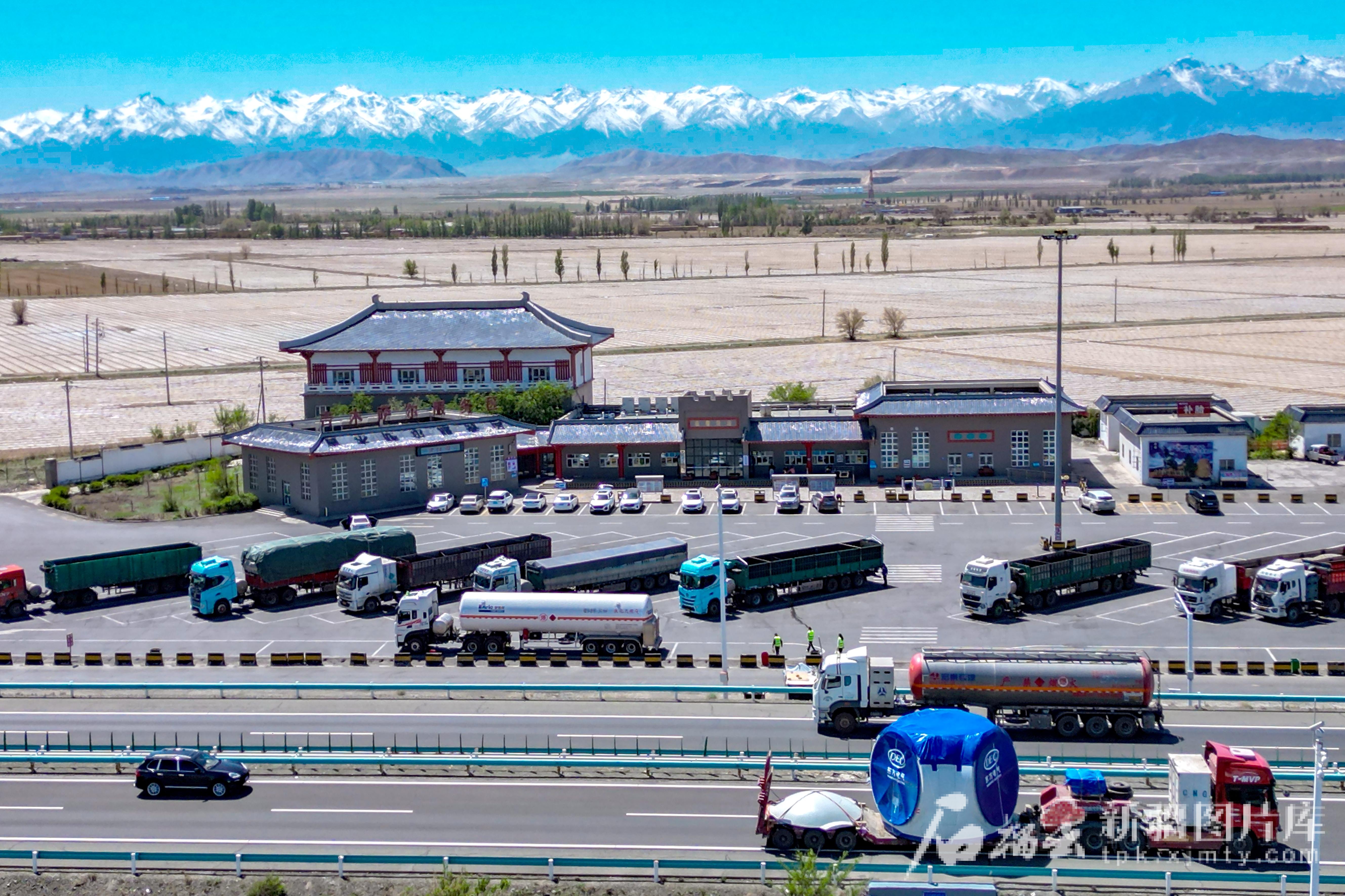 5月9日,京新高速吉木薩爾服務(wù)區(qū),車輛在服務(wù)區(qū)??俊?/p>