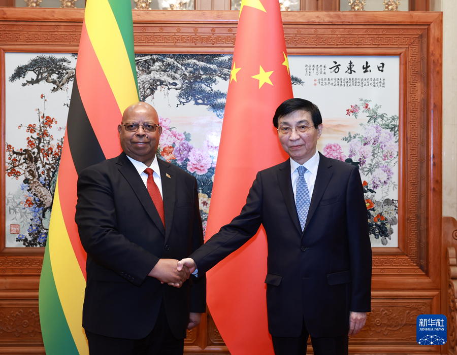 同日,王滬寧在京會見津巴布韋眾議長穆登達。