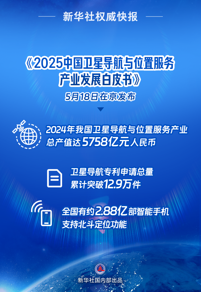 5月18日在京發(fā)布的《2025中國衛(wèi)星導(dǎo)航與位置服務(wù)產(chǎn)業(yè)發(fā)展白皮書》顯示,2024年我國衛(wèi)星導(dǎo)航與位置服務(wù)產(chǎn)業(yè)總產(chǎn)值達(dá)5758億元人民幣,同比增長7.39%;衛(wèi)星導(dǎo)航專利申請總量累計突破12.9萬件,繼續(xù)保持全球領(lǐng)先……