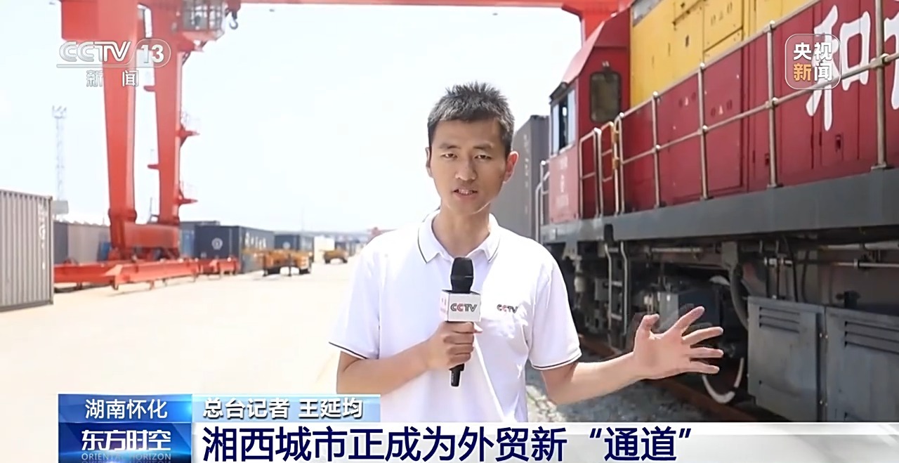 總臺記者 王延均:這是一條即將發(fā)往老撾的貨運專線,一共有70標箱,里面滿載著湖南省內(nèi)生產(chǎn)的新能源汽車、小家電、農(nóng)機、太陽能板等貨物。預計三天左右的時間就能把這些貨物從懷化運到老撾萬象。目前,在這里,僅發(fā)往老撾萬象的貨運專列每周都會有三列。