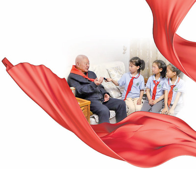 “謝謝你們?!笨讘椀碌皖^看著胸前的紅領(lǐng)巾,笑得像個(gè)孩子。他顫巍巍地想要站起身,但已經(jīng)十分困難。忽然,他張開口,斷斷續(xù)續(xù)地唱了起來:“向前,向前,向前!我們的隊(duì)伍向太陽……”聲音沙啞,甚至有些跑調(diào),但每一個(gè)字都咬得極重?!斑@么多年,他忘了許多事,但這首軍歌,他一句都沒忘,他最喜歡唱這首?!辩H鏘的旋律里,孔毅濕潤了眼眶。