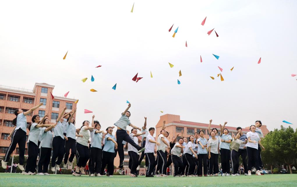 5月22日,在山東省高密市第五中學(xué),高三學(xué)生將寫有夢想的紙飛機拋向空中。高考臨近,各地學(xué)校組織高三學(xué)生開展不同形式的減壓活動,幫助學(xué)生放松心情,迎接高考。 新華社發(fā)(李海濤攝)