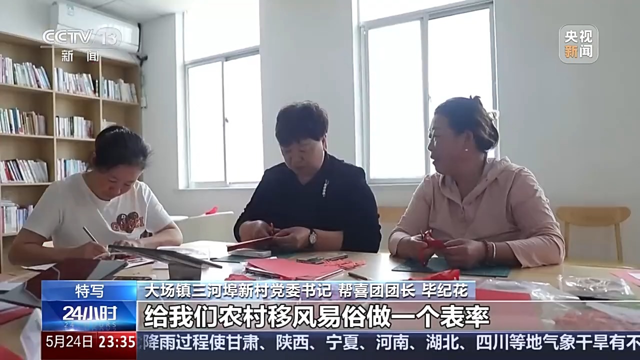 碰壁多了,隊(duì)員們也意識(shí)到,不是所有人都聽勸;要想扭轉(zhuǎn)落后的觀念,先得讓村民看得見、摸得著喜事簡辦新辦的好處。隨后,每當(dāng)村中有喜事,幫喜團(tuán)就把自家手工制作的喜饅頭、茶果,搭配上剪紙社精心剪制的喜字,作為新婚禮物免費(fèi)贈(zèng)送給新人。此外,還聯(lián)絡(luò)本地的舞蹈隊(duì)、秧歌隊(duì),免費(fèi)為新人提供婚禮上的表演。加上婚禮前后幫著收拾布置,一場婚禮下來,能幫村民剩下上萬元的費(fèi)用。