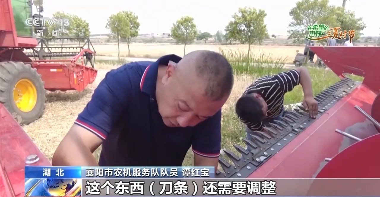 農(nóng)機(jī)維修也是夏收中非常重要的一個(gè)環(huán)節(jié)。在湖北省襄陽(yáng)市襄州區(qū)黃龍鎮(zhèn)潘明村的1000畝大田里,6臺(tái)收割機(jī)正趕在雨前搶收。突然,一臺(tái)收割機(jī)出現(xiàn)故障止步不前,機(jī)手撥打維修電話(huà)20分鐘后,農(nóng)機(jī)服務(wù)車(chē)趕到了麥田旁。經(jīng)過(guò)檢修發(fā)現(xiàn),這臺(tái)收割機(jī)刀條發(fā)生了斷裂。