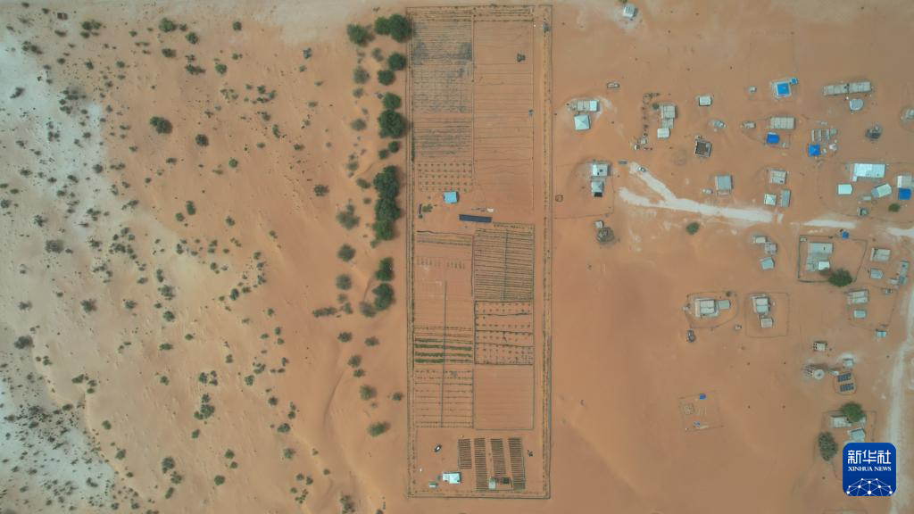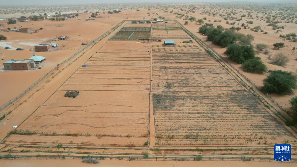 該示范項(xiàng)目由中毛雙方共同實(shí)施,中國科學(xué)院新疆生態(tài)與地理研究所提供示范區(qū)建設(shè)與后續(xù)技術(shù)支持。園區(qū)于2024年7月建成,占地4公頃,主要涵蓋外圍防沙阻沙區(qū)域、經(jīng)濟(jì)果林區(qū)、沙土蔬菜種植區(qū)、牧草種植區(qū)及家禽養(yǎng)殖區(qū)。比爾·巴爾卡村位于首都努瓦克肖特以東約70公里的沙漠邊緣?!拔覀儺?dāng)初選址時(shí)就考慮靠近首都圈,便于技術(shù)展示和后續(xù)培訓(xùn)推廣?!痹H赴毛里塔尼亞參與項(xiàng)目建設(shè)的中方專家、中國科學(xué)院新疆生態(tài)與地理研究所沙漠研究團(tuán)隊(duì)成員周娜介紹說。