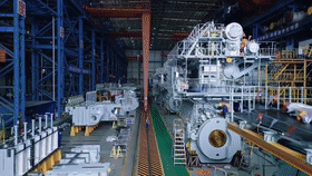 記者在位于青島西海岸新區(qū)的中船發(fā)動機生產(chǎn)車間內(nèi)看到,一臺四五層樓高的船舶發(fā)動機正在緊張安裝當(dāng)中。