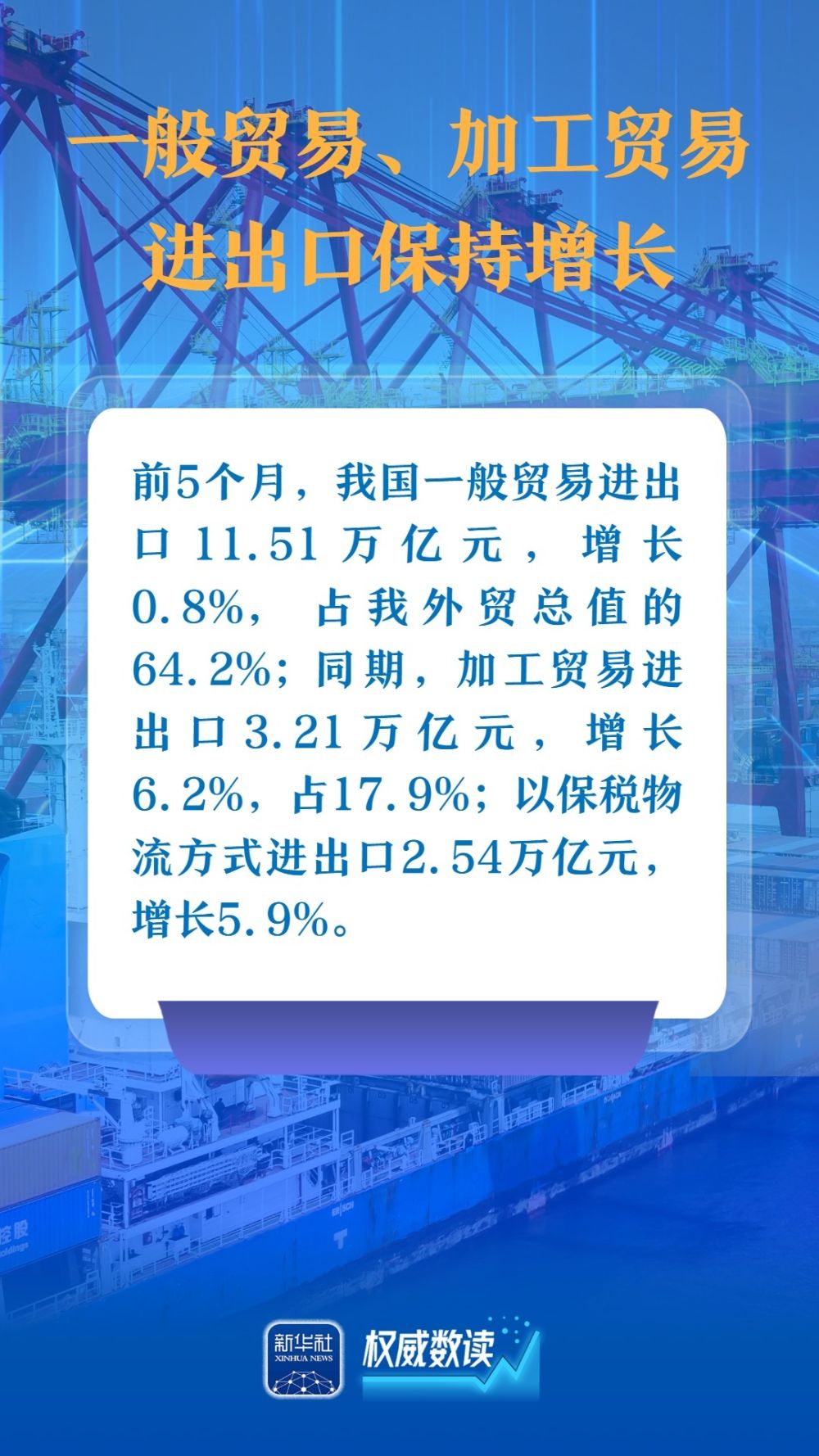 海關(guān)總署9日發(fā)布數(shù)據(jù),今年前5個(gè)月,我國(guó)貨物貿(mào)易進(jìn)出口總值17.94萬(wàn)億元人民幣,同比增長(zhǎng)2.5%。以下幾組數(shù)據(jù),展示出我國(guó)對(duì)外貿(mào)易在外部壓力下依然保持較強(qiáng)韌性。