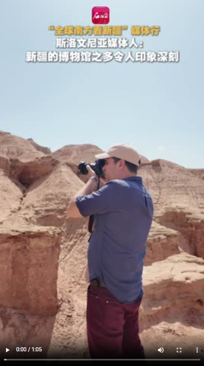 6月19日,“全球南方看新疆”媒體行多國記者來到拜城縣,參訪了克孜爾紅石林景區(qū)、克孜爾尕哈烽燧、蘇巴什佛寺遺址。斯洛文尼亞《勞動(dòng)報(bào)》專欄記者莫伊察·皮舍克表示,新疆的文物遺產(chǎn)極其豐富,文物保護(hù)工作也處于非常高的水平,各類博物館非常多,強(qiáng)烈推薦大家來新疆看看。