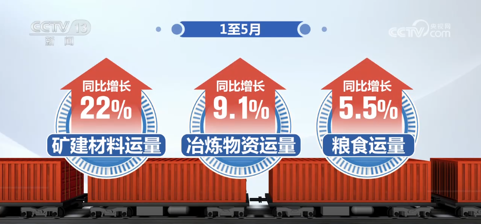 大宗物資運輸保障有力。新疆地區(qū)的煤炭運輸,晉南地區(qū)的疏港鐵礦石運輸等重點項目都開辟了綠色通道,確保高效送達。1至5月,國家鐵路發(fā)送煤炭8.45億噸,其中電煤5.75億噸,鐵路直供電廠存煤保持較高水平,礦建材料、冶煉物資、糧食運量同比分別增長22%、9.1%、5.5%。