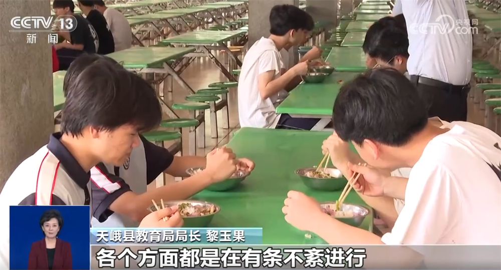 針對民族中學(xué)積水嚴(yán)重的實際情況,天峨縣教育局綜合研判并報當(dāng)?shù)攸h委、政府批準(zhǔn),決定將原設(shè)在天峨縣民族中學(xué)的中考考點(diǎn)改設(shè)到天峨縣高級中學(xué),天峨縣民族中學(xué)被困在宿舍樓的430名考生也在23日中午安置到天峨縣高級中學(xué),24日跟其他考生一起在這里參加考試。
