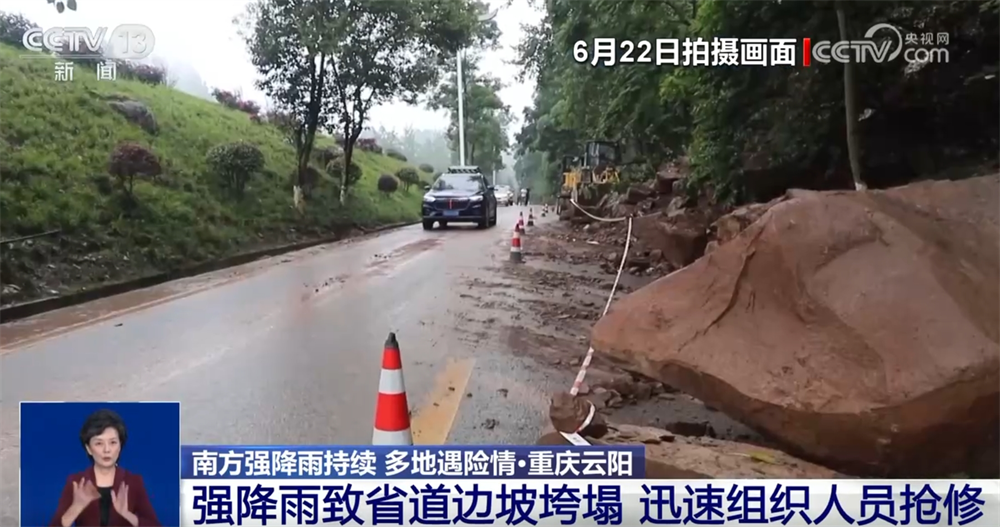 從本月18日開始,重慶云陽縣出現(xiàn)持續(xù)強(qiáng)降雨。22日上午,云陽縣境內(nèi)省道的一處路段發(fā)生邊坡垮塌,導(dǎo)致道路受阻,當(dāng)?shù)囟嗖块T迅速組織人員前往現(xiàn)場處置。