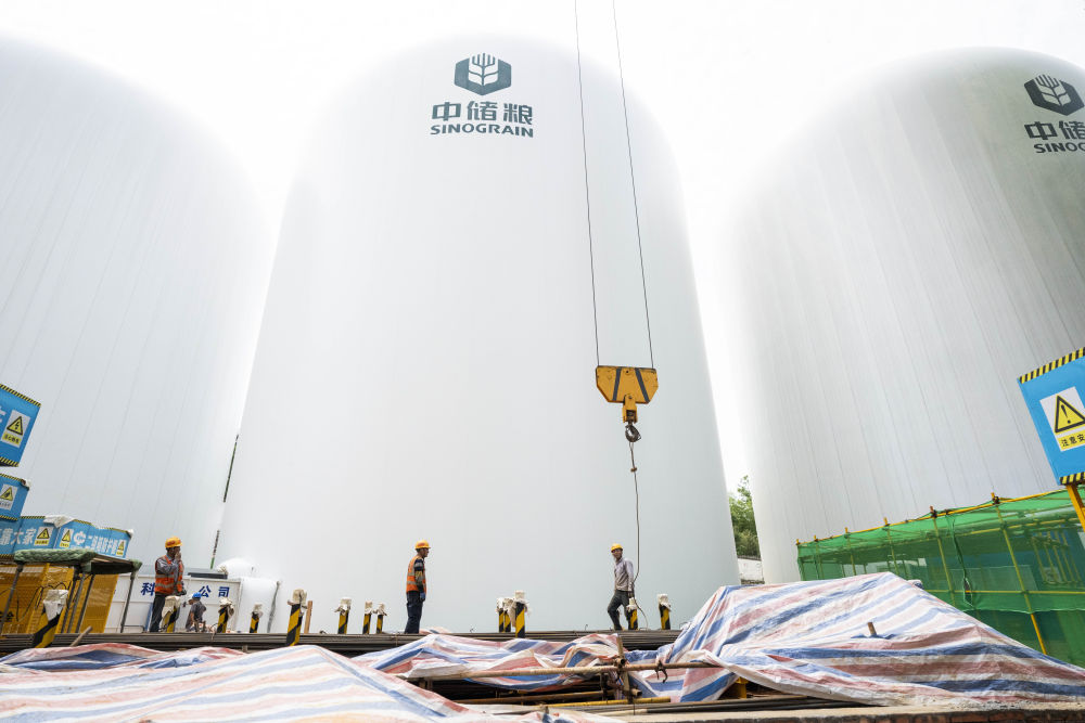 這是5月6日在中儲糧長沙直屬庫拍攝的氣膜糧倉建設施工現(xiàn)場。新華社記者 陳思汗 攝
