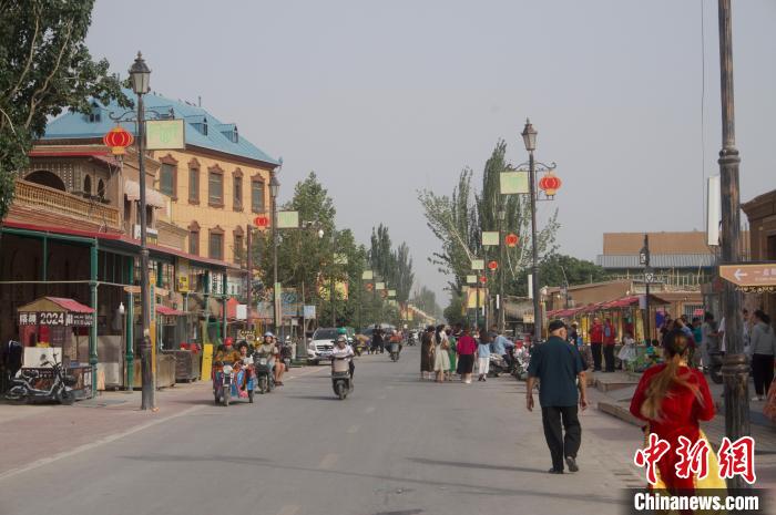 6月28日晚,阿孜汗村無花果風(fēng)情街一景。中新社記者 蘇碧瀅 攝