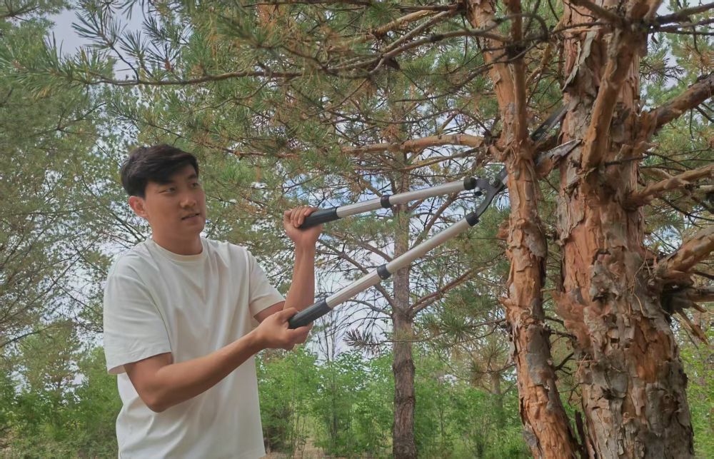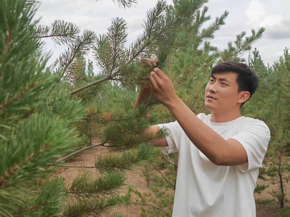 2017年,在爺爺?shù)膸ьI(lǐng)下,石健陽正式投身植綠事業(yè)?!斑^去沙害嚴(yán)重,老一輩治沙人最迫切的是要定住風(fēng)沙,讓地面先綠起來,所以當(dāng)時的樹種主要是生長快的楊樹。”石健陽說,“幾十年過去,楊樹林老化嚴(yán)重,出現(xiàn)大面積枯死的情況。我們現(xiàn)在陸續(xù)對老化的林地進(jìn)行樹種更換,補(bǔ)種四季常青、生命周期更長的樟子松,目前已經(jīng)補(bǔ)種了5萬畝?!?/p>