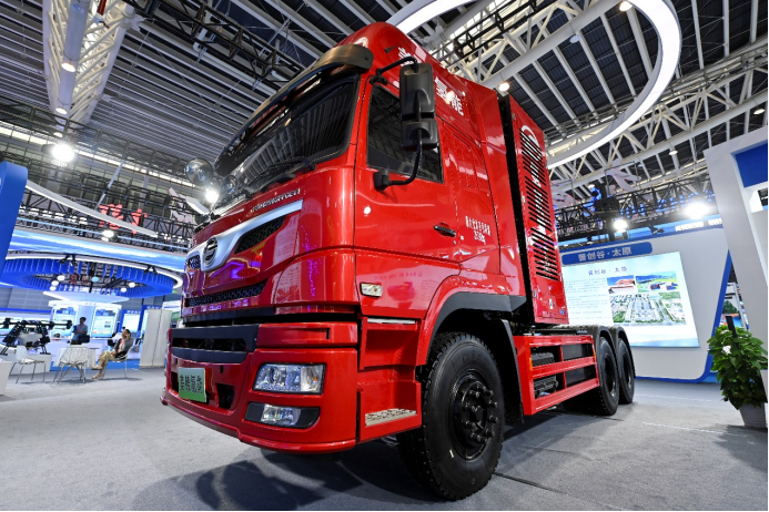 在2024中國(太原)國際能源產業(yè)博覽會上拍攝的氫能重卡。新華社記者 楊晨光 攝