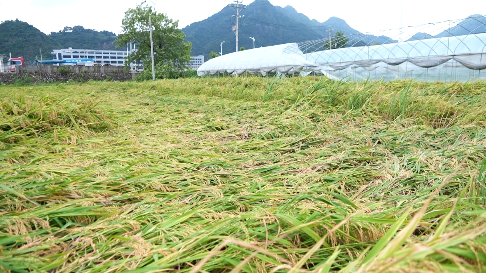 周永乾是當?shù)胤N糧大戶,共種植600多畝水稻,受本次臺風影響,95%以上的水稻出現(xiàn)倒伏,損失不少。