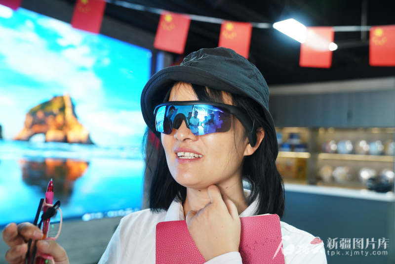 6月30日,在喀什綜合保稅區(qū)全球貿(mào)易通新疆喀什中亞出口商品選品中心,記者王娜體驗了一款出口的智能眼鏡,該眼鏡可隨機翻譯一百多種語言。